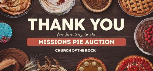 MATCHING! Church of the Rock generously matches all funds raised by the Pie Auction, as well as all donations to the “10/40 Window & Beyond General” fund, up to the end of June, 2026!