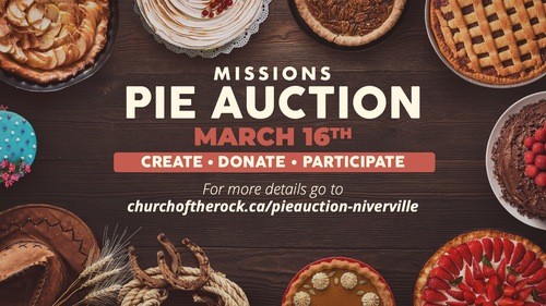 MATCHING UPDATE! Church of the Rock will generously match all funds raised by the Pie Auction, as well as all donations to the “10/40 Window & Beyond General” fund until the end of June, 2025!